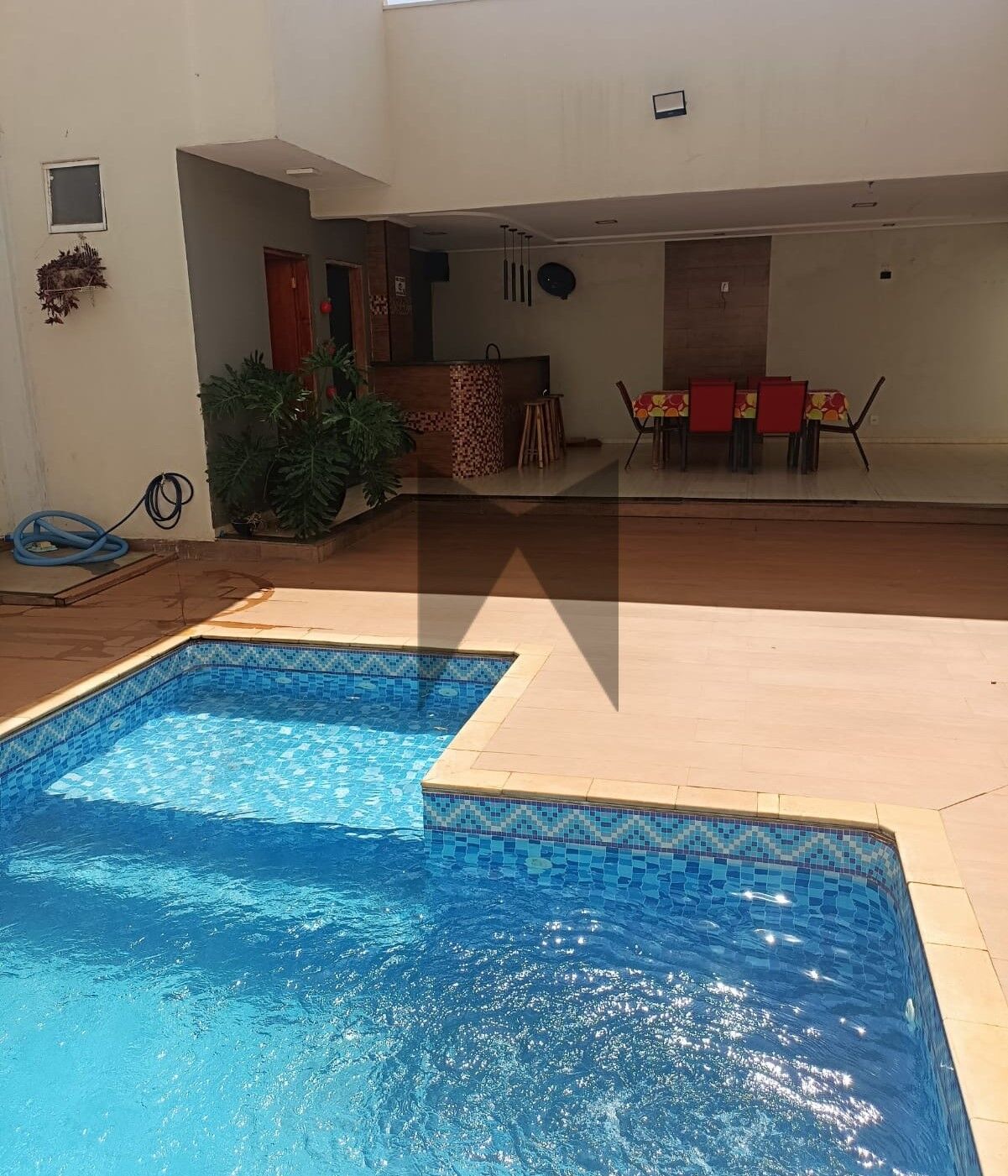 - Piso: Porcelanato polido com rodapé embutido; piso estilo amadeirado no quintal